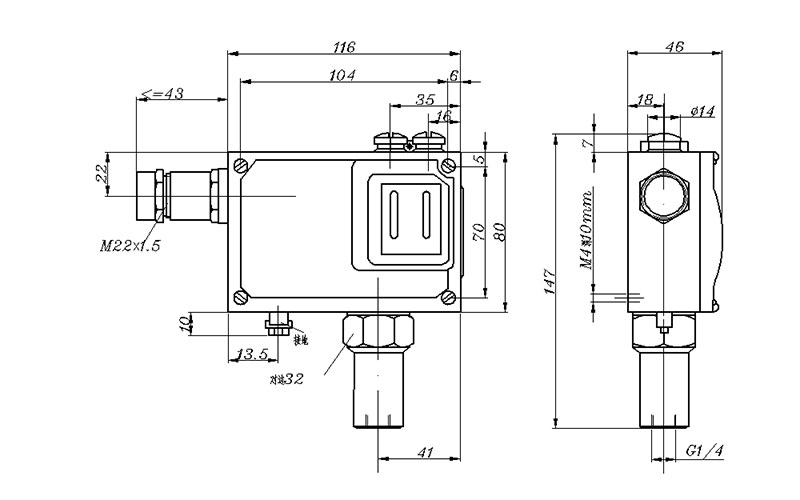 500/7D防爆壓力開關采用膜片式傳感器,可用于空氣等中性氣體和水、液壓油、潤滑油、輕燃油等液體介質。500/7D防爆壓力開關的設定值可調,調節范圍0~2.5MPa。