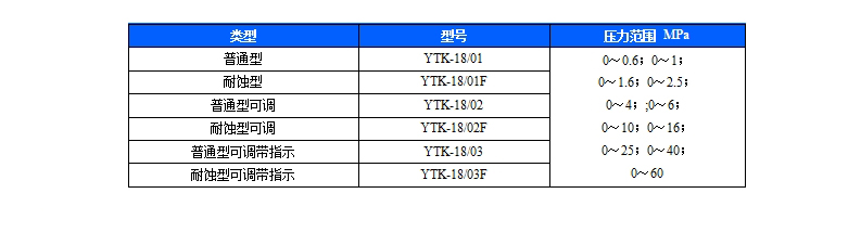 型式及壓力范圍: